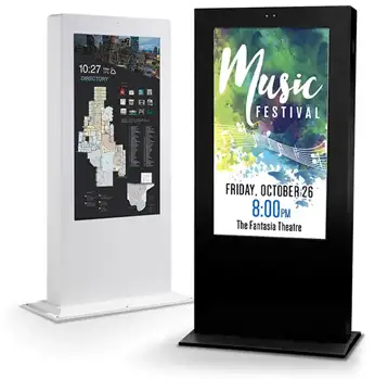 Double-sided digital signage kiosk designed for high-visibility environments.
